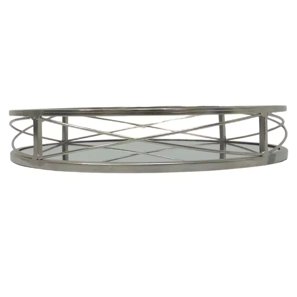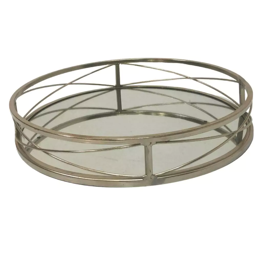 Bandeja em Metal Com Espelho Redonda Prata 30,5xA5,5cm Adely Decor