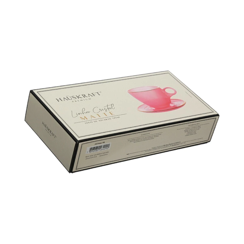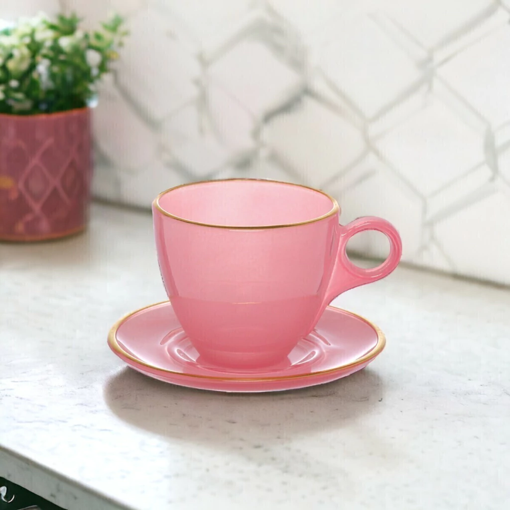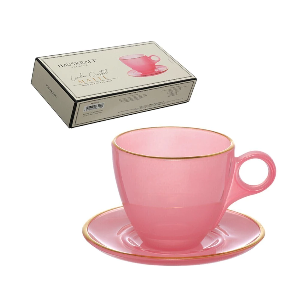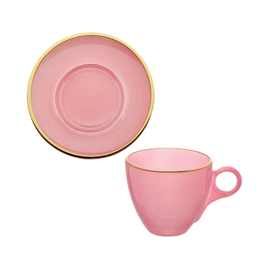 Xícaras Para Chá Com Pires De Vidro Matte Rosa Com Borda Dourada 170ml 4 Peças Hauskraft